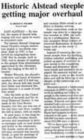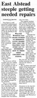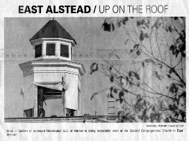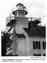 Restoring bell towers involves more than just replacing rotton timbers: tools and materials must be transported from the ground up to the the steeple area, and debris must be removed from enormous heights and transferred to the ground below.